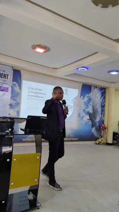 Ensuite, l’ingénieur Hervé Kasongo a captivé l’auditoire avec une présentation sur le thème : “Les IA et les compétences numériques : une menace ou une opportunité”. Il a mis en lumière les outils populaires comme les chatbots ou les générateurs musicaux, ainsi que les risques liés à l’utilisation mal encadrée de ces technologies, illustrés par des études de cas percutantes.